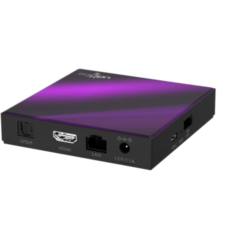 Смарт-бокс работает на базе операционной системы Android 14-го поколения с адаптированным для использования на больших ТВ экранах оригинальным пользовательским интерфейсом. Сразу же после первого запуска пользователям доступен широкий перечень предустановленных приложений, в том числе для просмотра потокового видео, доступа в Интернет, общения в сети и работы с офисными документами. При необходимости установить все нужное дополнительное ПО можно непосредственно из официального магазина Google Play.